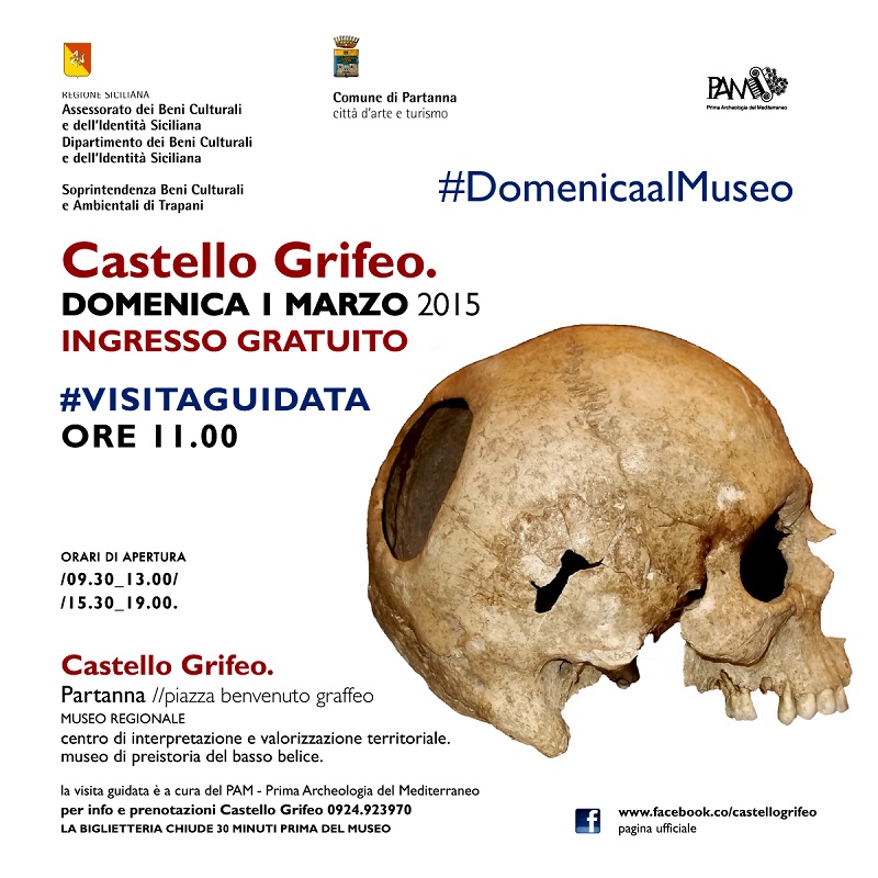 I soci dell´Associazione PAM, la prima domenica di ogni mese, nell´ambito dell´iniziativa Domenica al Museo, e la seconda domenica di ogni mese, in occasione dello svolgimento della Fiera del bestiame, provvederanno ad accompagnare i visitatori del Museo della Preistoria del Castello Grifeo alle ore 11.00.